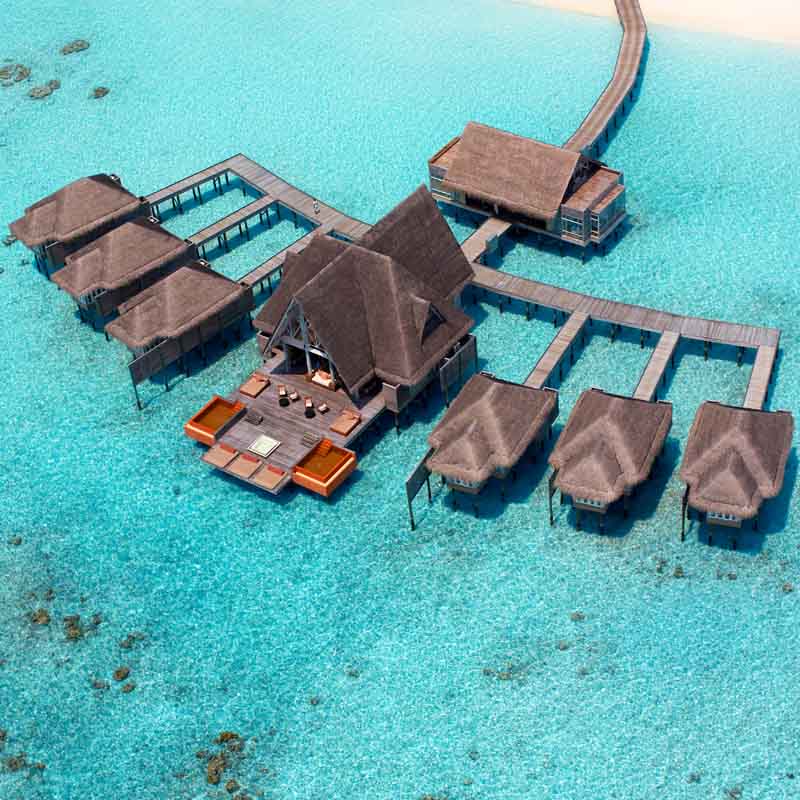 日落水上泳池别墅在海洋中提供终极的亲密逃生。更重要的是,你可以选择自己的枕头!探索水底珍宝与玻璃底部浴缸的特色。别墅的其他一些亮点包括户外花洒淋浴,水上吊床,迷你酒吧等等。