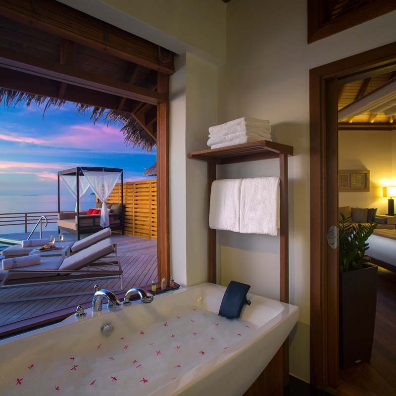 放纵是定义这些别墅的字眼。在马尔代夫令人兴奋的水域之上。您可以选择进入自己的私人游泳池,甚至在绿松石泻湖游泳。您还可以畅通无阻地看到地平线,一个奉献的别墅主机,宽敞的木质甲板,可直接通往泻湖。