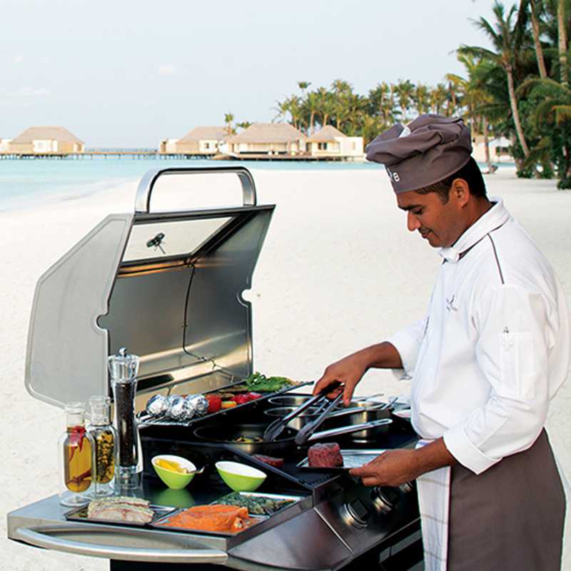 在您自己的别墅舒适的同时,您可以享受您的餐点,同时还可以使用Carte Blanche别墅用餐选择。 使用Carte Blanche,宽敞的别墅露台将改造成一间私人餐厅,厨师将为您创造诱人的作品! 您还可以选择在海滩用餐,搭乘当地的多尼船,一个岛屿 - 选择是无止境的