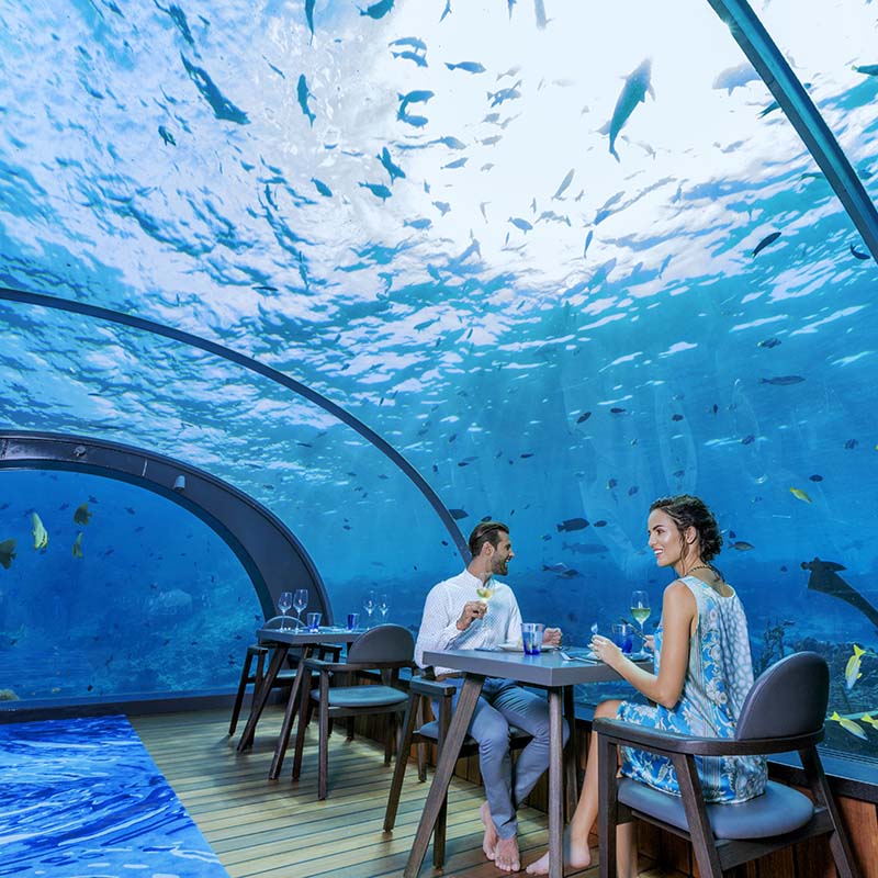 在世界上最大的全玻璃海底餐厅,将您的感觉发送到马拉维下面5.8米的地方。