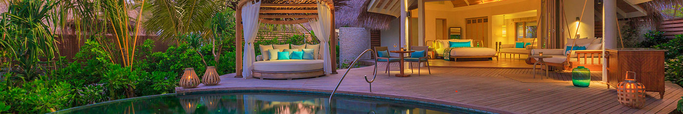每间装饰独特的别墅都坐落在一个私人海滩上,拥有定制的家具,豪华而简单的整体感觉将自然风光和马尔代夫设计遗产融为一体。入住人数:两名成人和一名9岁以上的小孩,或三名成年人。