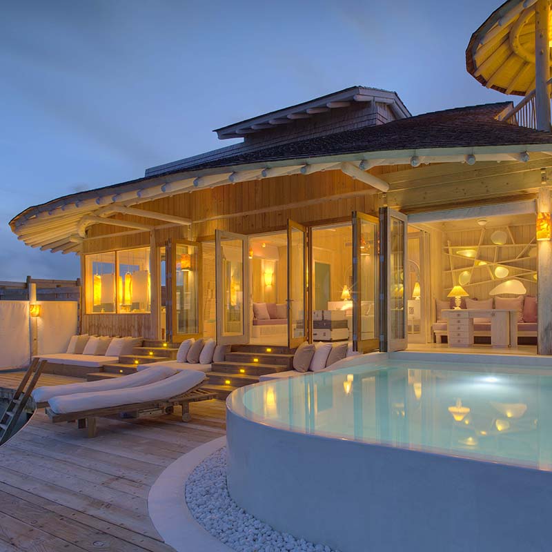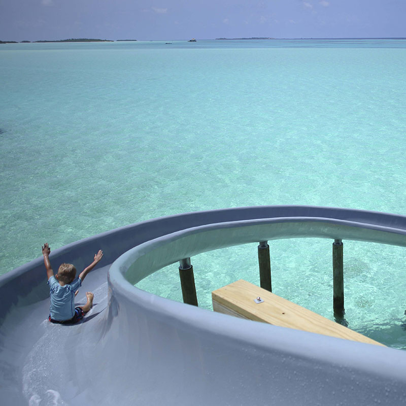 一卧室泳池水别墅分布在两层楼,设有自己的私人游泳池,周围环绕着充足的日光浴和海洋景观。除了一个宽敞的主卧室和一个孩子的睡眠区域,还有一个学习,步入式迷你吧,浴室,更衣室,户外淋浴和休闲座位的休息区的休息区。头顶上楼更多的座位和一个餐厅萨拉与屋顶甲板和一个弯曲的水滑梯,让您到下面的水域。