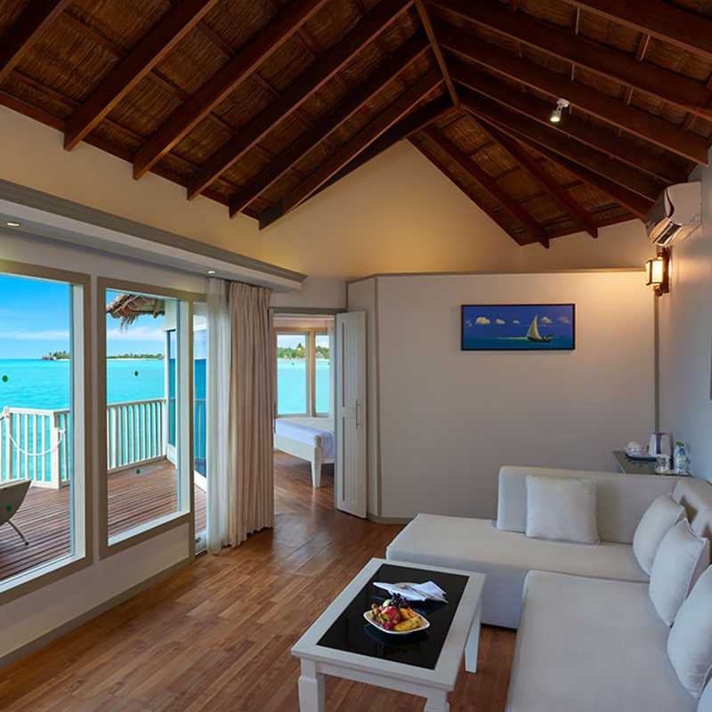 体验提供给您的水上别墅享受的清爽舒适。栖息在印度洋的710平方英尺水上别墅包括特大号床,带日光浴床的私人日光浴平台,华丽的马尔代夫雕刻和最好的设施,这是一个室内按摩浴缸,是经过漫长的一天冒险之后放松身心的理想场所。