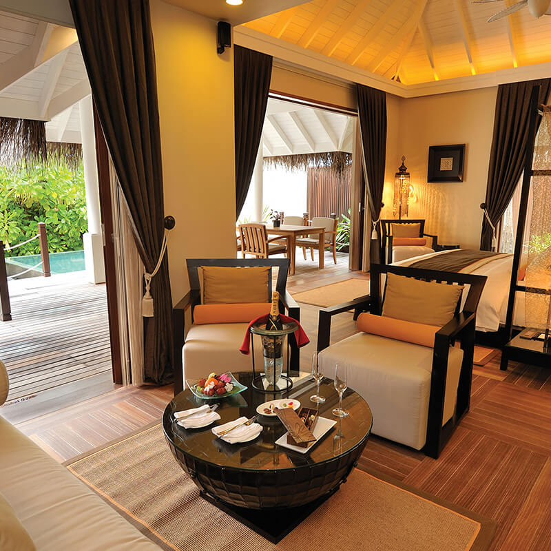 Perched over the turquoise lagoon, these over-water-villas offer guests direct lagoon access. Spend your days relaxing on the ocean hammocks set on the private outdoor terrace. IDD calling & Wi-Fi facilities will have you connected to the world even whilst holidaying in the middle of the ocean.
