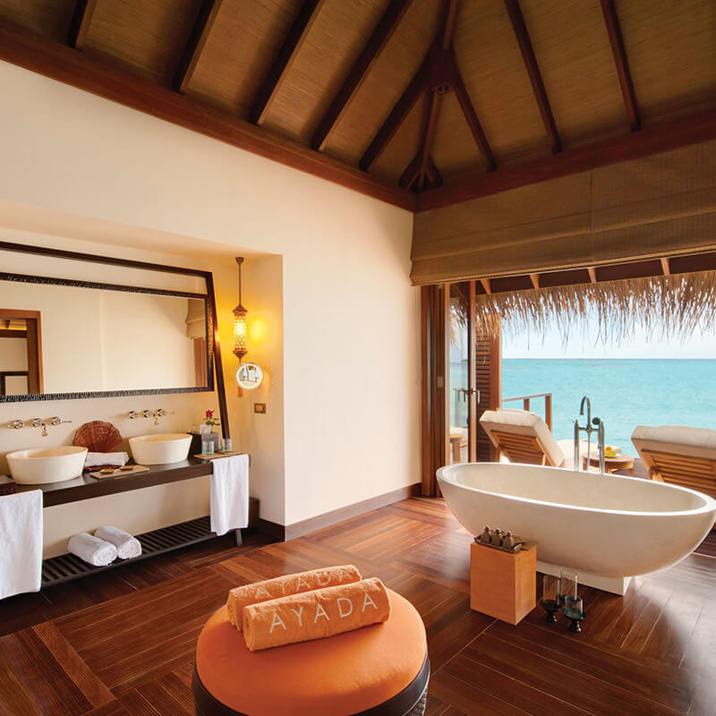 Feel at home in paradise at Ayada Maldives where dolphins come to visit as you chill in your spacious villa or suite & 5 Star luxuries pamper you from the restaurants to the spa.