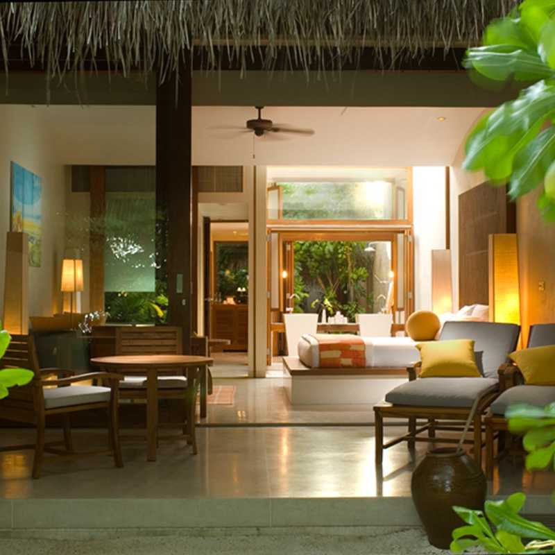 Combining a luxurious Deluxe Beach Villa with an added living space, this expansive abode provides the ideal coastal holiday home with private beach access, pool and terrace area. One Junior Beach Suite is located on the west side of the island, while the other is on the east, each providing breathtaking views of an awe-inspiring sunset and sunrise respectively.