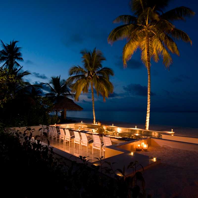 Featuring a nine-course Japanese menu, the Koko Grill Restaurant is a romantic venue for dining on Rangali Island. This open-air grill enjoys an idyllic location right on the beach and is the perfect place to enjoy live cooking of Japanese dishes amidst an exclusive setting under the stars for just 12 diners.