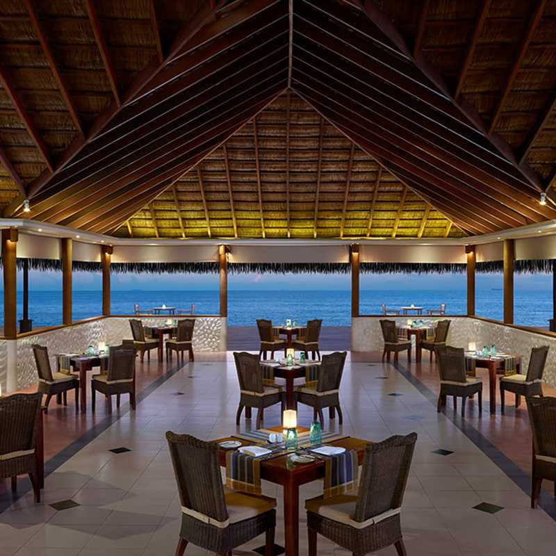 Presenting an enchanting over-water setting, the Rehendhi Restaurant and Bar is an exclusive restaurant that serves international cuisine. Located by the resort’s over-water suites, the restaurant provides gourmet-style fare. The restaurant’s attached bar and wine cellars offer a delicious range of wines that will complement your meals.