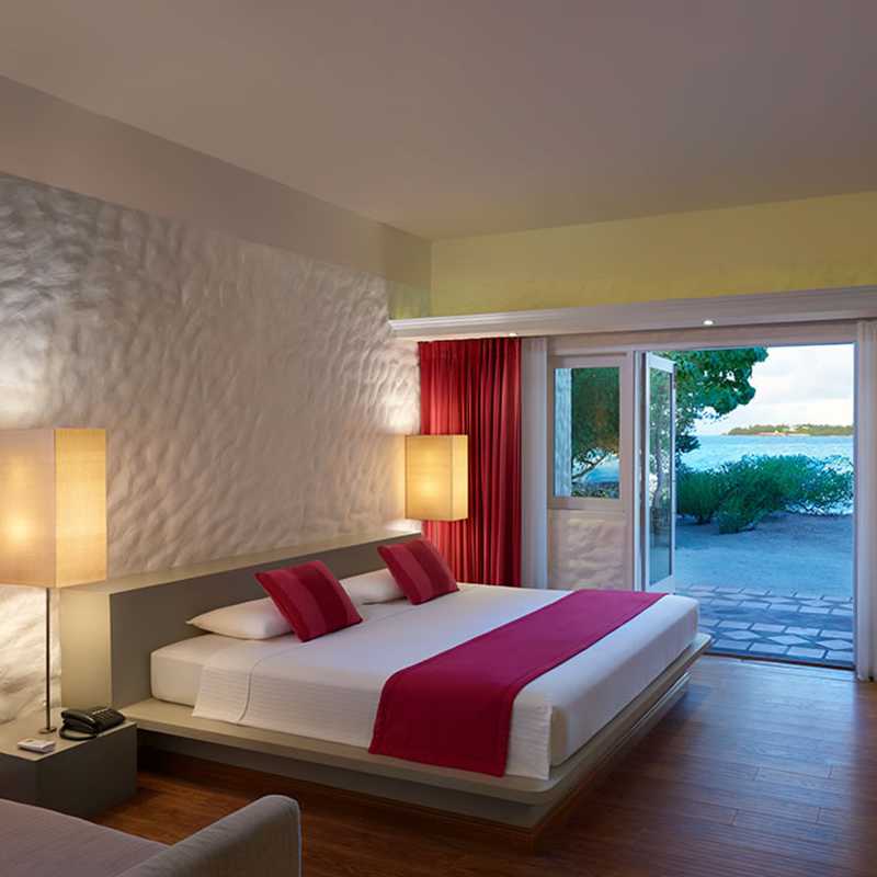 With uninterrupted views of the gorgeous beach, the 28 Beach Bungalows come with a multitude of luxurious amenities spread out generously over 538Sq. Ft. The villas include a King-Size bed & an additional single bed. The rooms have a broad, open veranda furnished with sun beds that are ideal for chilling out in view of the mesmerizing Indian Ocean.